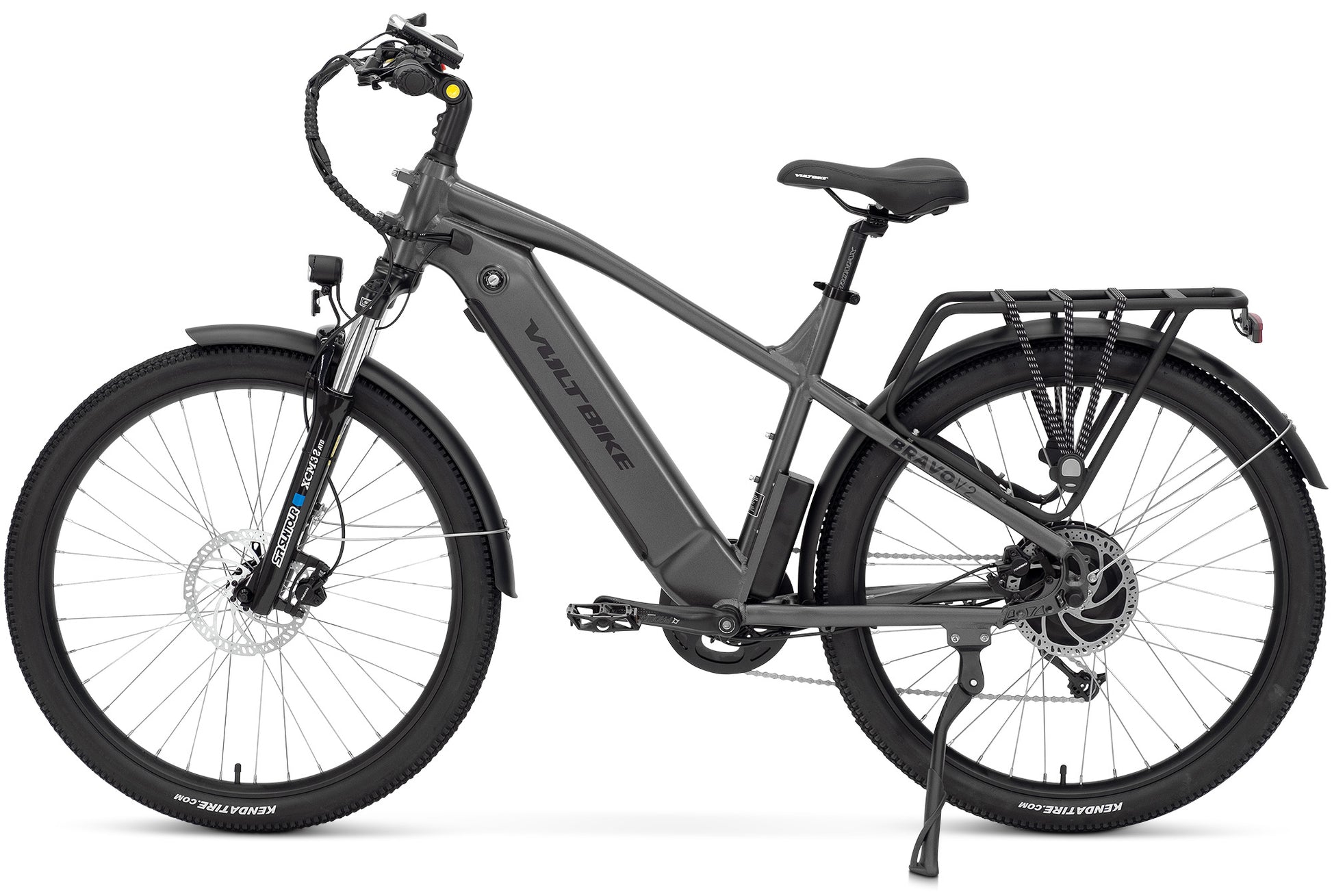 The Voltbike Bravo V2 comes standard with Suntour XCT DS lockout suspension. Designed for quick release axles and bolt on axles. 135mm dropout, 32mm stanchions, 210mm steerer tube, 90mm travel. Weight is only 7lbs.