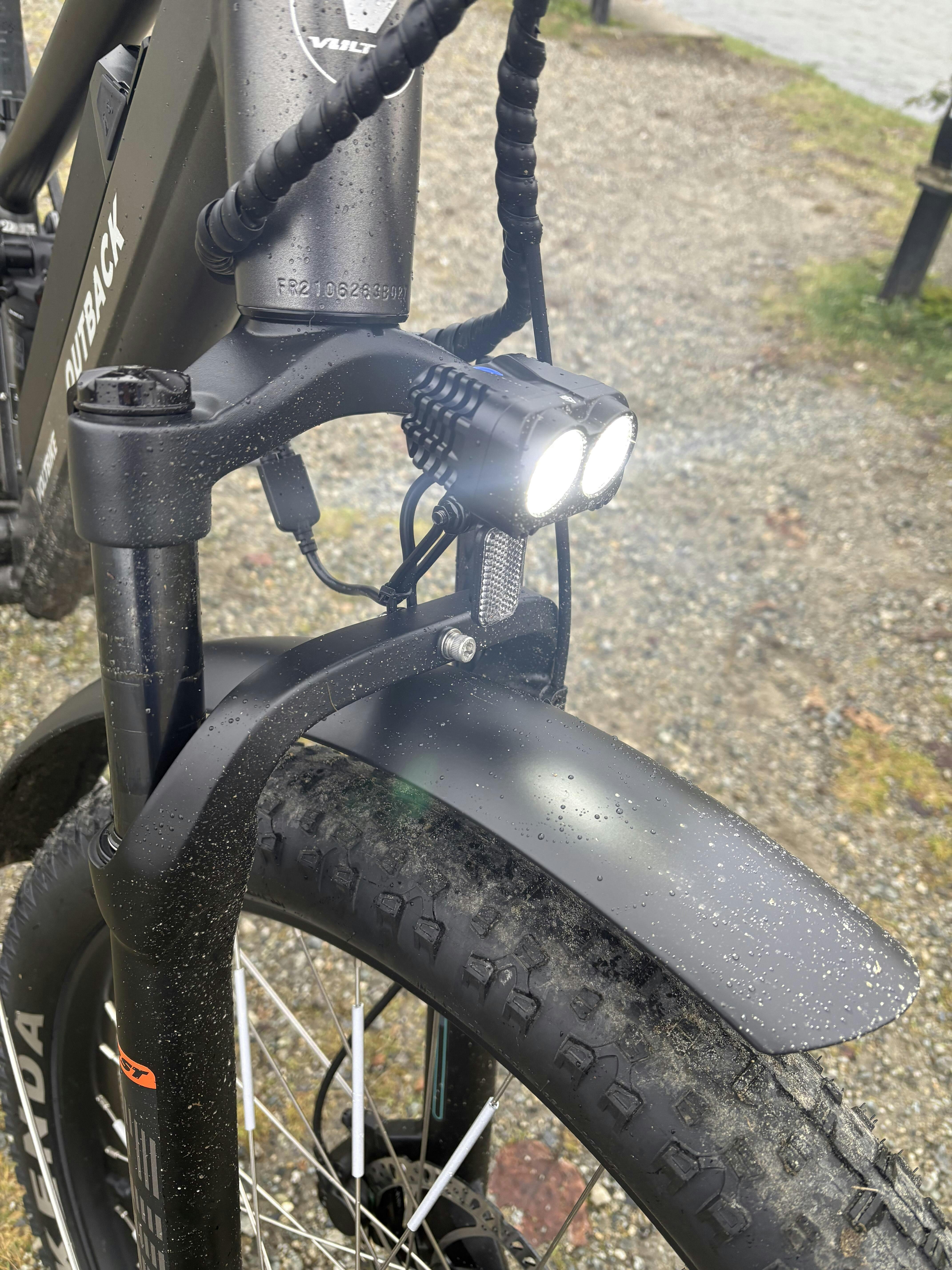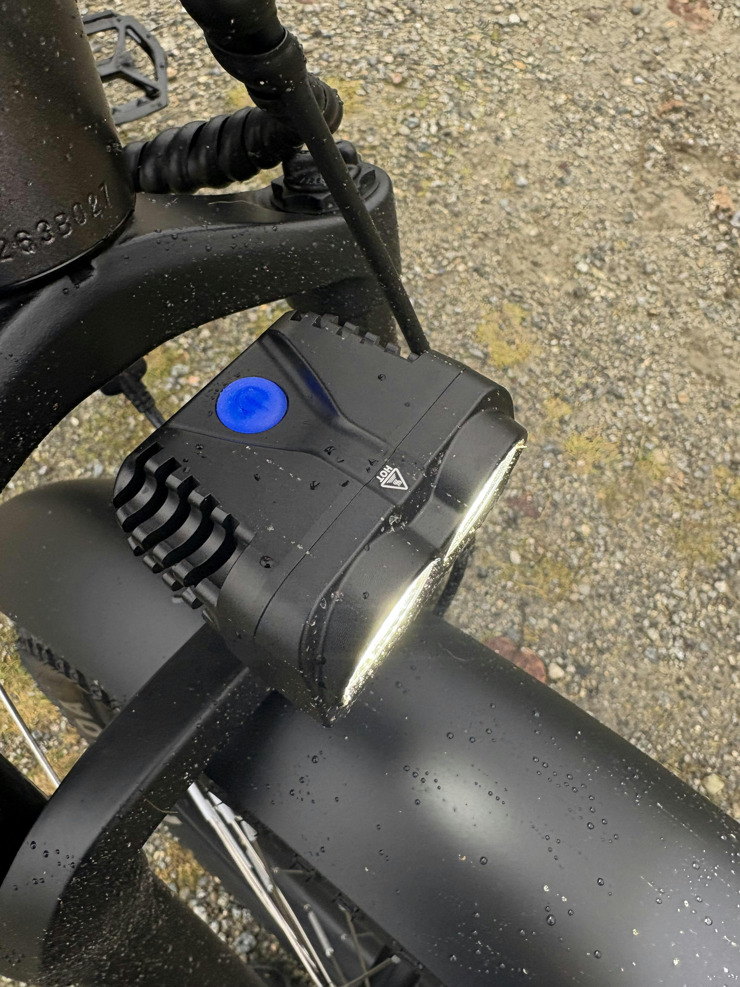 This is an awesome and must-have upgrade for an e-bike and especially for Canadian winters when it dark early. Also great for visibility. Love the different intensity/brightness settings.