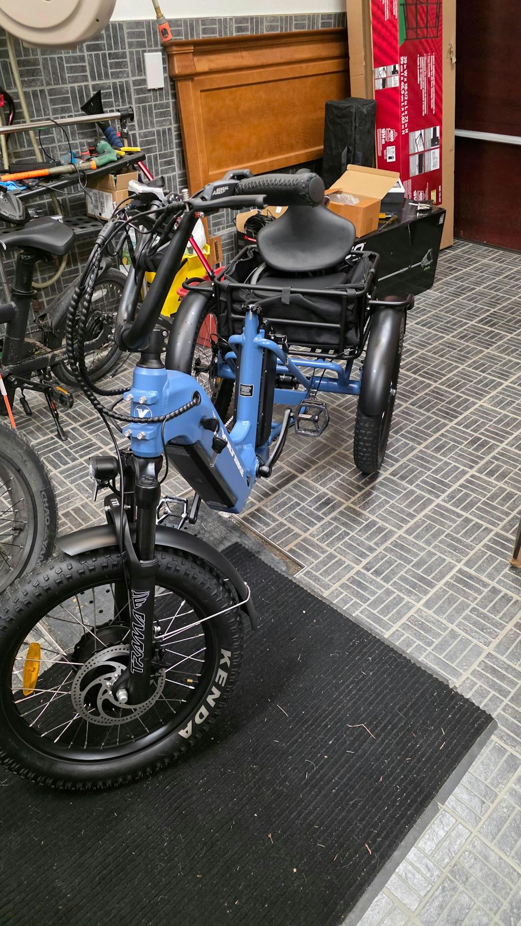 Riders must be aware that the Voltbike Trio handles differently than a standard two-wheel bicycle. We recommend that riders lower their speed, especially when taking sharp turns, while still getting accustomed to riding a fat-tire trike. Failure to do so may cause the Trio to become unstable and result in personal injury. Please watch the video for quick overview of the most important aspects of rider safety.