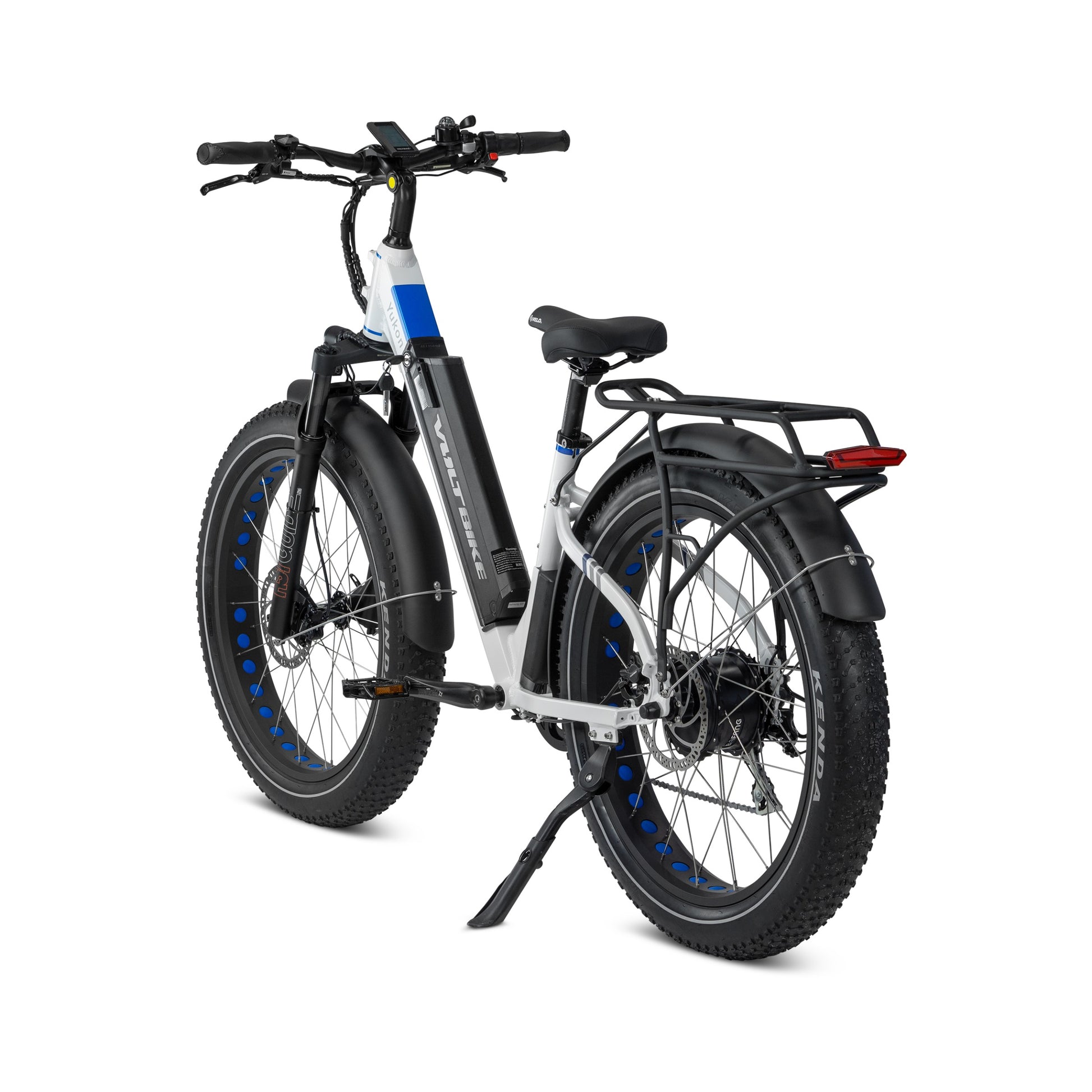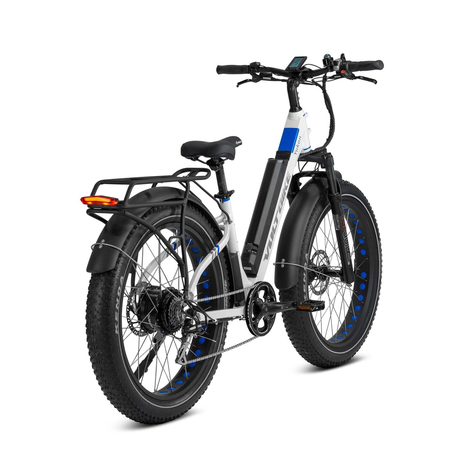 Standard for Yukon Step-Thru is aluminum rear rack with extra wide tubing. Rated for up to 50lbs of cargo this rack can fit any load with ease. Mounted directly on the rack is LED rear taillight with brake light functionality.