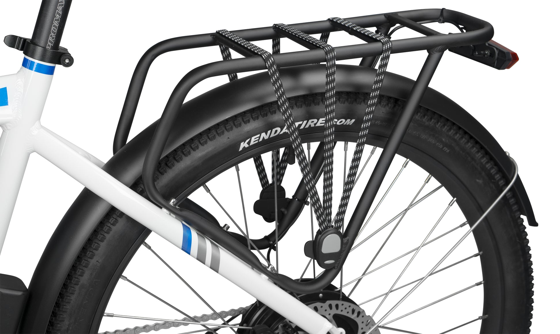 Standard for Bravo is an aluminum rear rack which can fit any load with ease up to 50lbs. Mounted directly on the rack is LED rear taillight with brake light functionality.