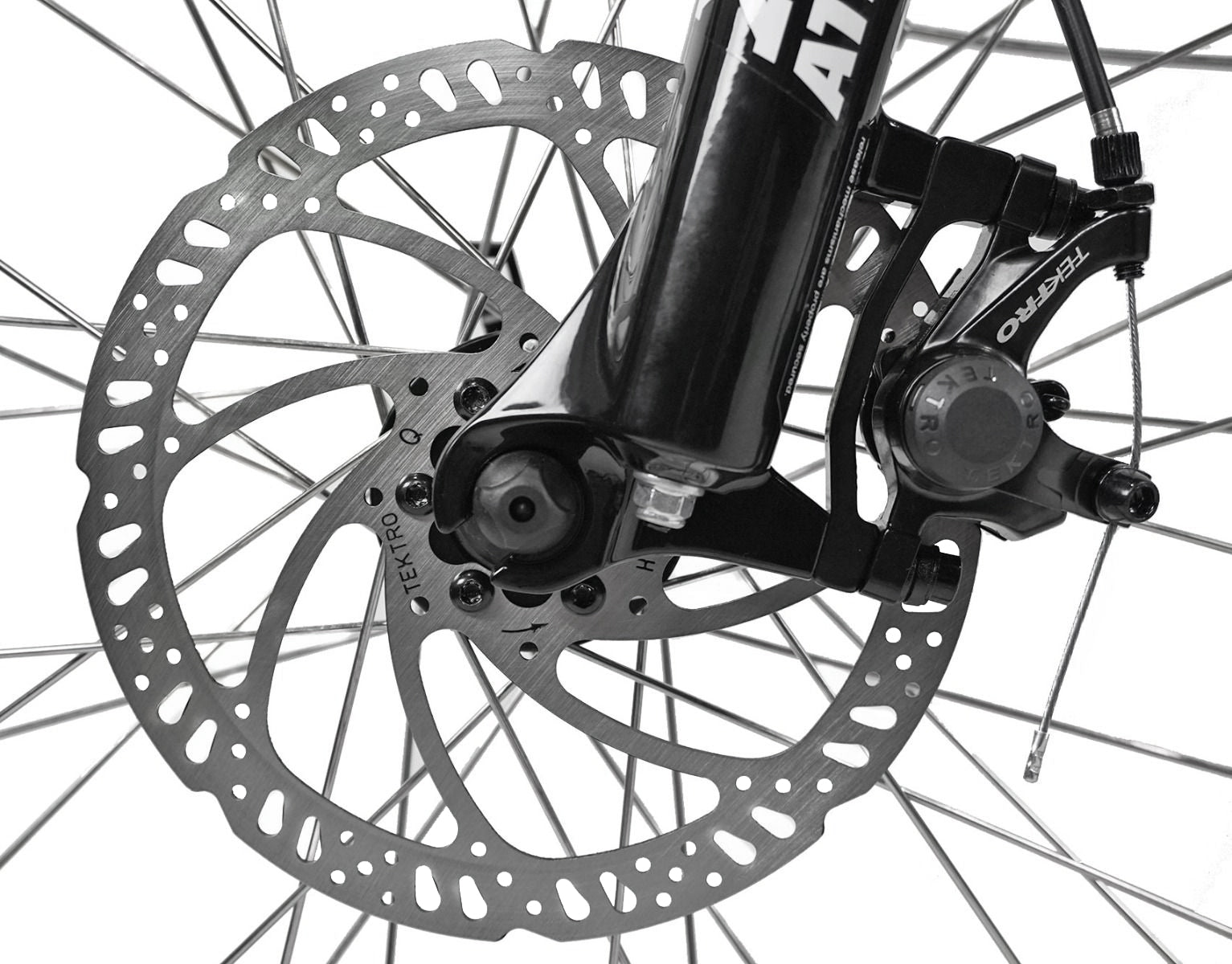 The Bravo is equipped with Tektro Auriga hydraulic front and rear disc brakes. Tektro Auriga comp disc brakes feature an open system design using non-corrosive and environment-friendly mineral oil. Features dual piston design, melt forged caliper body with automatic positioning via front or rear adapters.